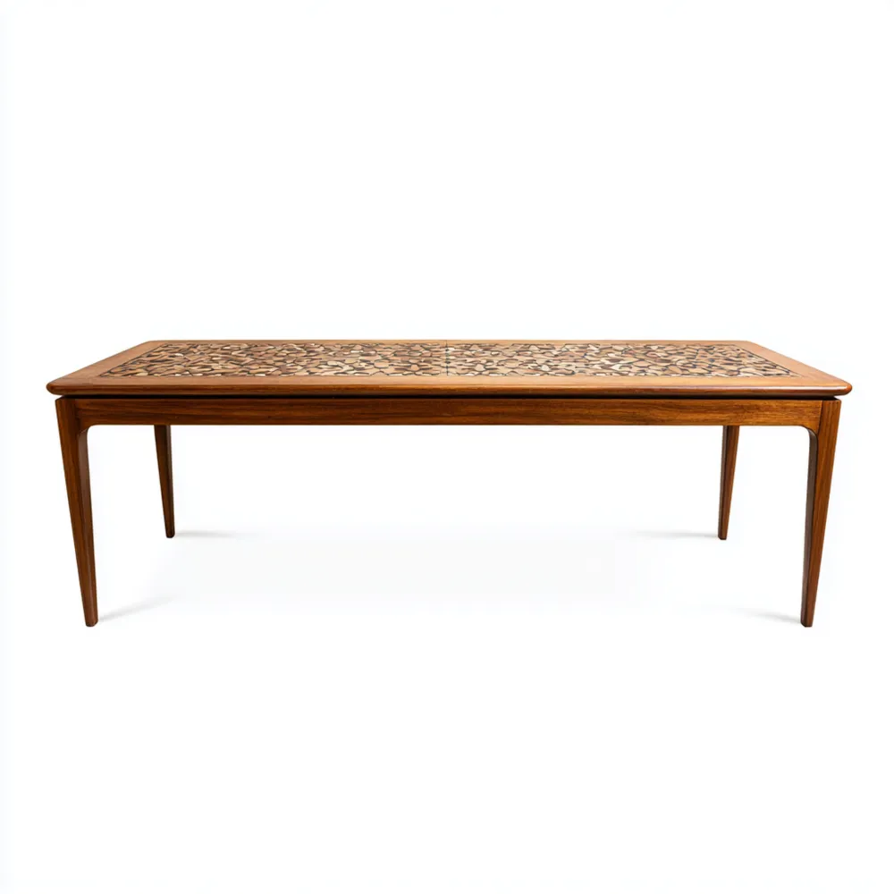 Material und VerarbeitungDer Tisch besteht aus hochwertigem Massivholz mit einer warmen, naturbelassenen Oberfläche. Das geometrische Muster verleiht dem Tisch eine besondere Optik und unterstreicht den Vintage-Charakter.